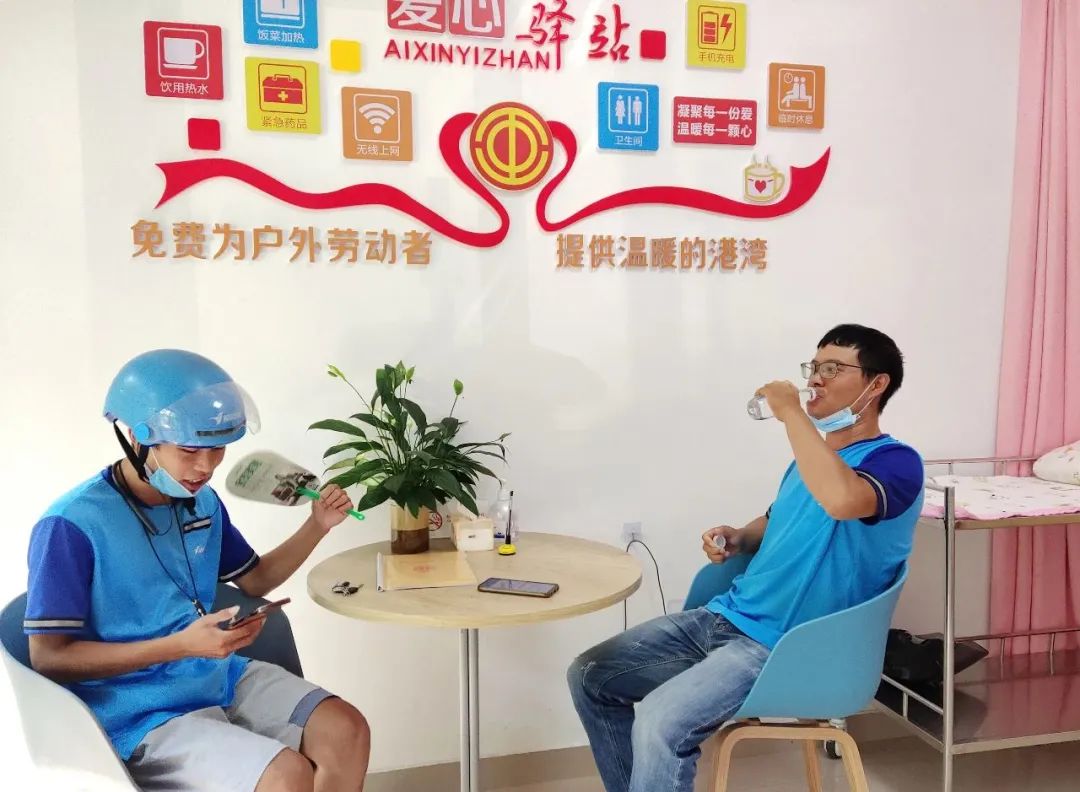 “下雨天不错避雨,夏天不错乘凉,关于咱们这些流动使命的东谈主来说,这里就像一个温馨的小家……”连日来,江西省握续高温天气,外卖小哥王师父正在驿站里休息。上饶市带湖路爱心驿站由于地处城市中心和中枢商圈,前来休息的外卖小哥和环卫工东谈主较多,他们有的休憩、有的加热餐食、有的续水充电,这里成为他们使命和生计的“温馨港湾”。