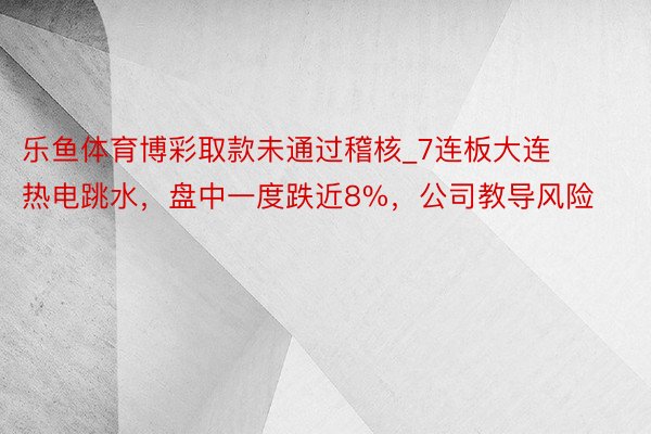 7连板大连热电跳水,盘中一度跌近8%,公司教导风险